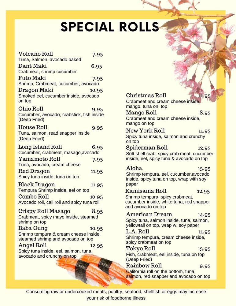 Shrimp tempura, cream cheese inside and spicy crabmeat on top.